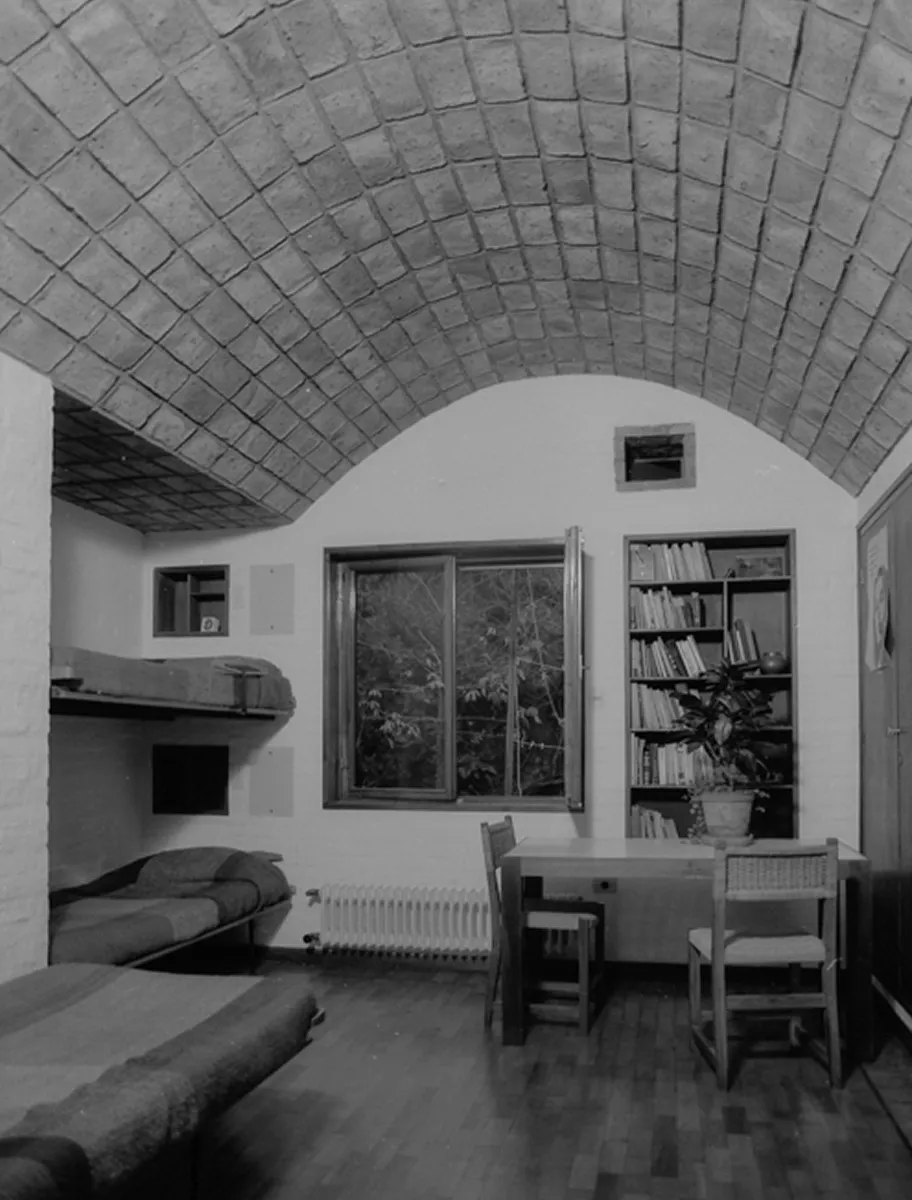 Para alojar a los once hijos según sexo y edad, se requerían cuatro dormitorios que no cabían en el ancho del terreno. Por eso, el de los cuatro hijos mayores se ubicó en planta baja con iluminación de un patio inglés; así se evitó una planta alta que habría complicado el funcionamiento y alterado la escala de los patios interiores.