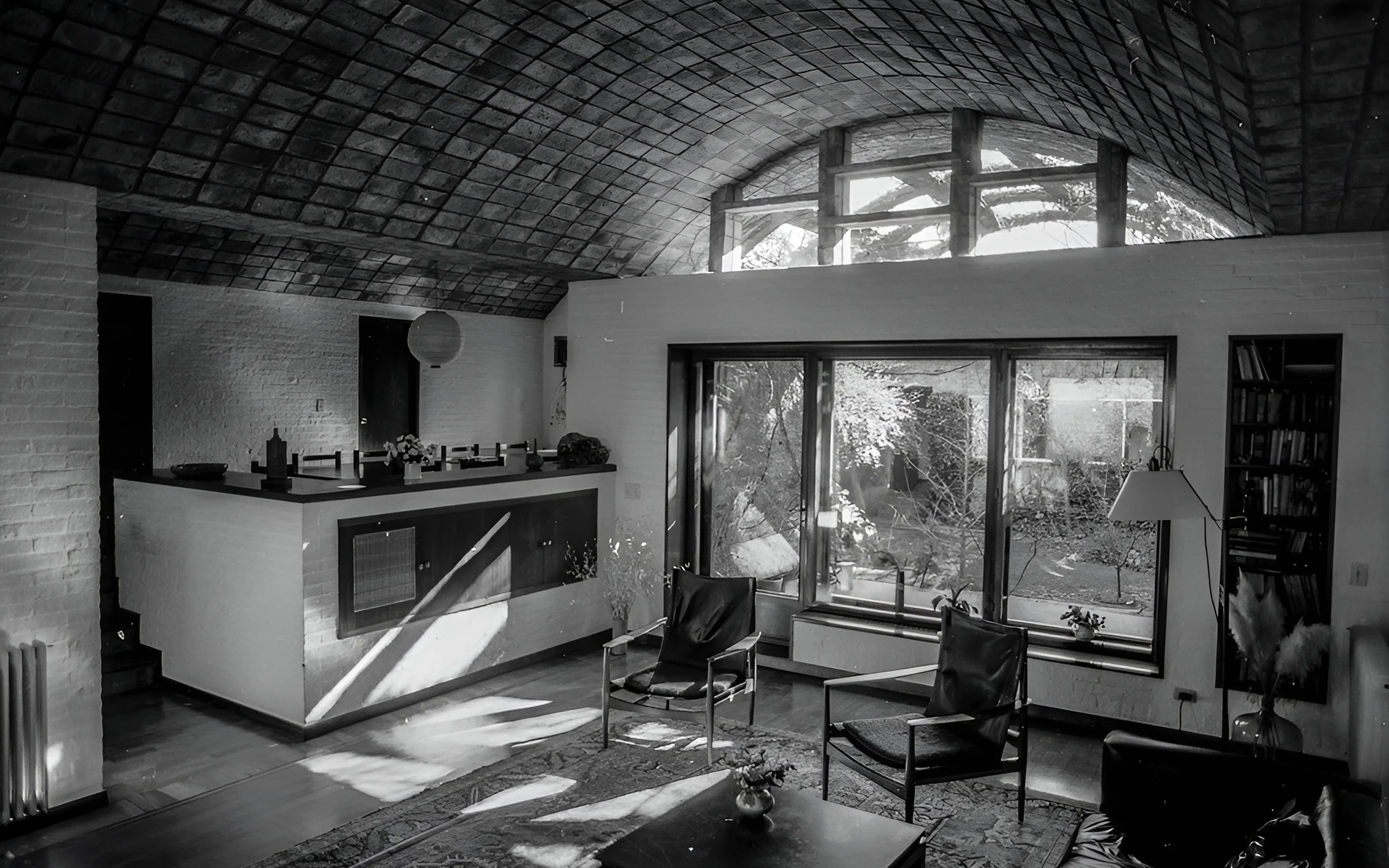 Para Dieste, la apertura al exterior debía ser equilibrada, cuestionando el uso excesivo del vidrio en la arquitectura moderna. Sostenía que las grandes superficies vidriadas no solo encarecen el acondicionamiento térmico en un clima destemplado como el uruguayo, sino que, fundamentalmente, diluyen la sensación de abrigo que una casa debe proporcionar. Por ello, diseñó los vanos con medida, priorizando ese carácter ancestral de protección y refugio.