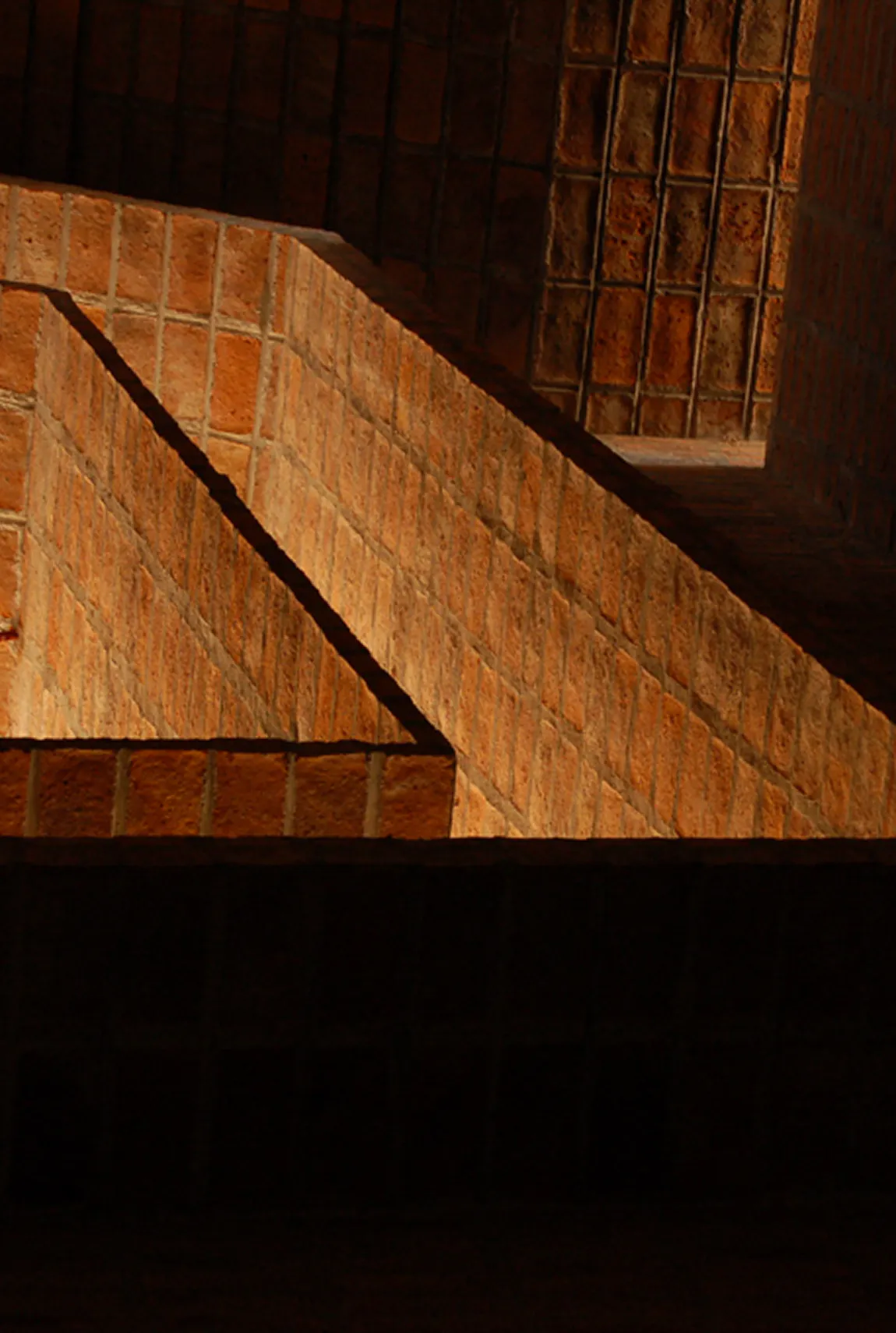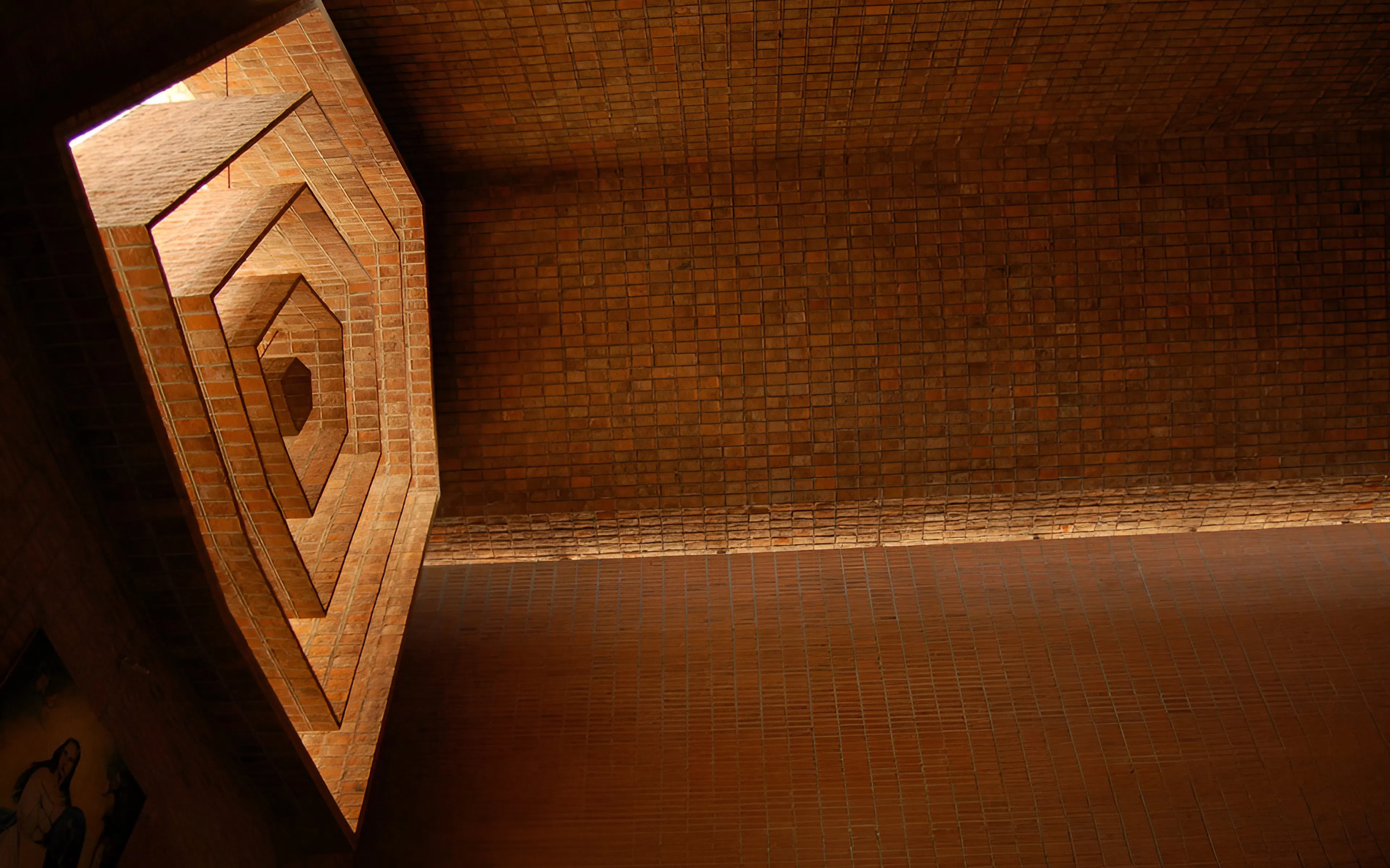La torre se construyó sobre una plataforma sostenida por dos muros delgados de 11 cm de espesor, con un armado mínimo. El presbiterio se cubre con una cúpula de geometría poliédrica, y en el lado norte de la torre se abrió un gran lucernario de ladrillo, liviano y sin estructura metálica, donde los vidrios fueron colocados directamente sobre la mampostería.