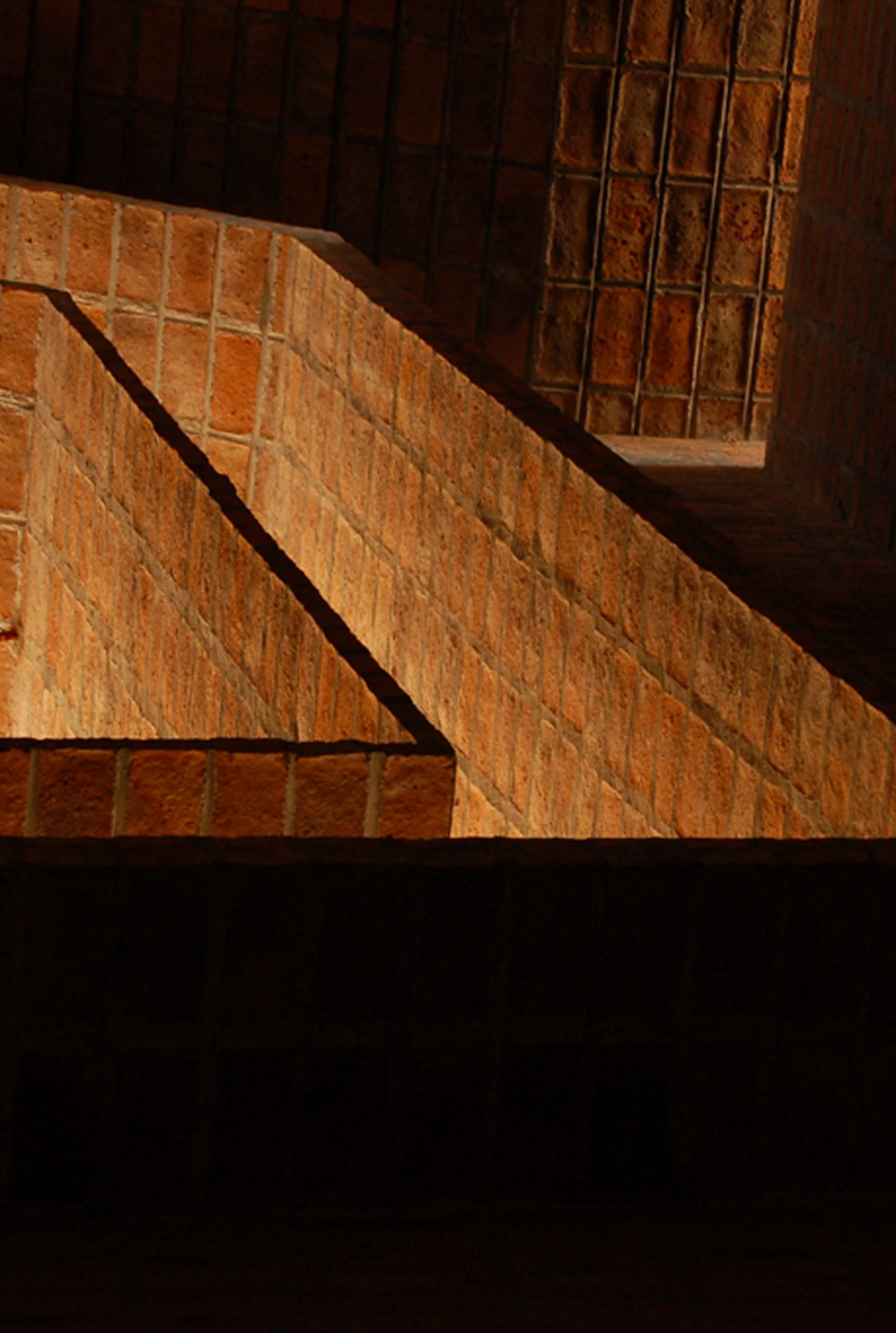 "El arreglo que se nos pidió, debía comprender solo la nave y el presbiterio. La fachada existente, y el espacio de la nave, sugerían la solución adoptada. Una iglesia de tipo basilical con dos naves laterales bajas y una nave central..."